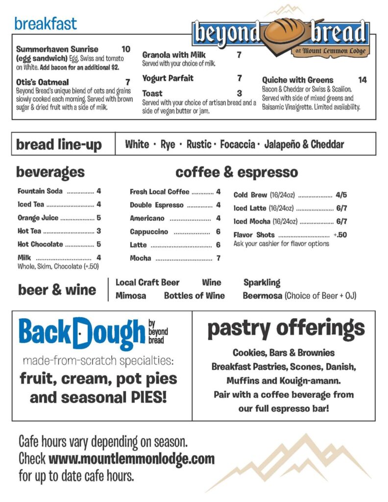 So whether you’re here for breakfast, lunch, or a mid-afternoon snack, let Beyond Bread be part of your Mount Lemmon experience.
