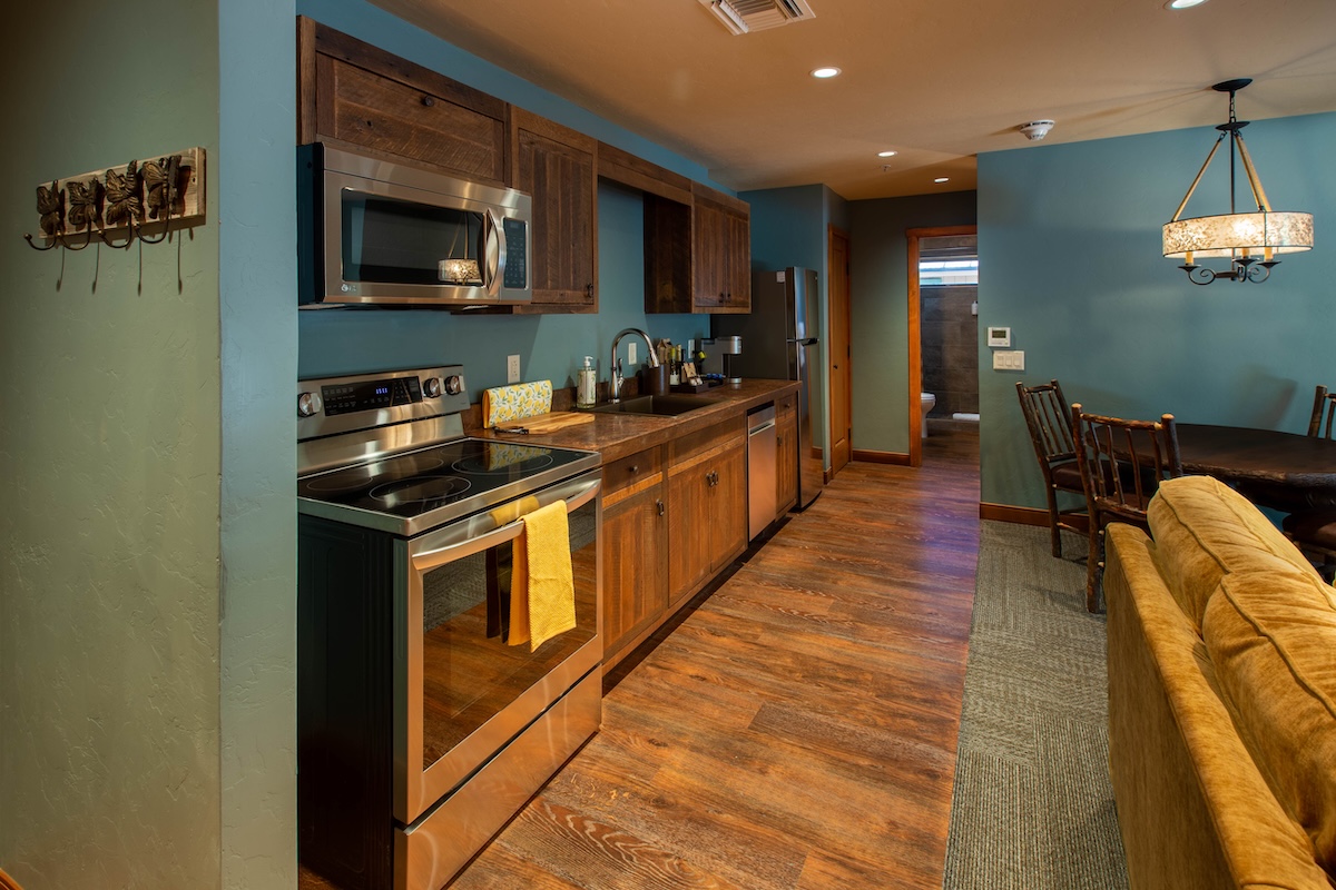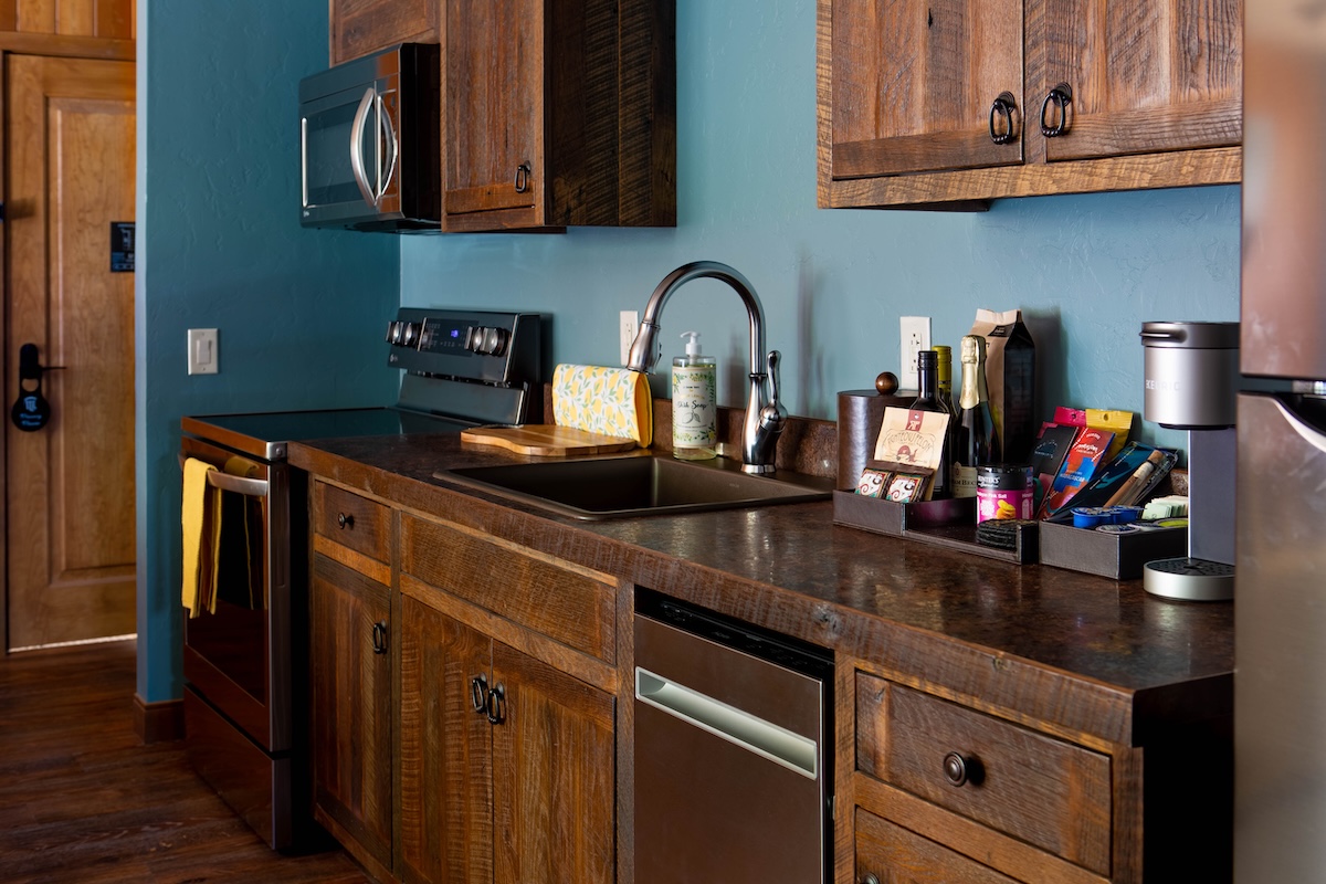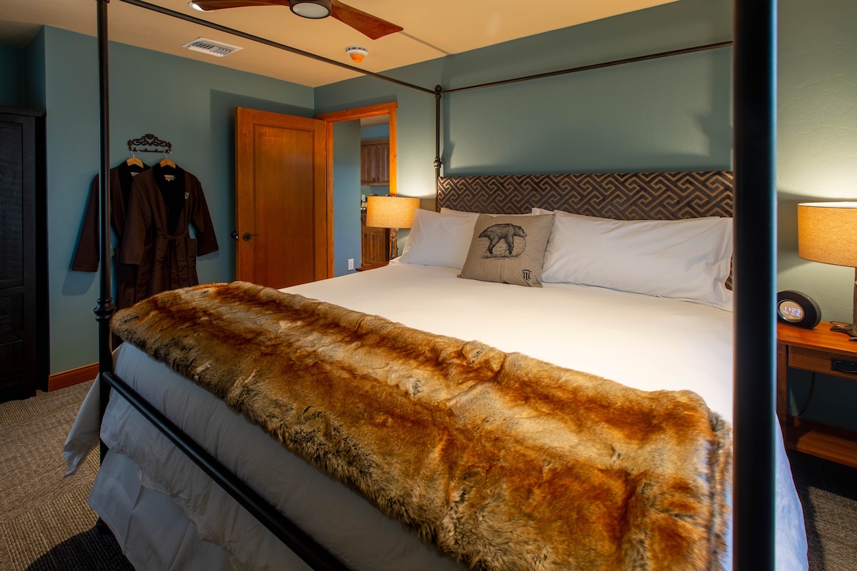 Experience the pinnacle of Mount Lemmon Lodging in our most spacious and thoughtfully designed suite. At 560 square feet, the Heart’s Desire offers the feel of a private mountain residence, complete with a separate king bedroom, full kitchen, and a cozy living room perfect for quiet and romantic evenings. Step outside to your own private patio, where a fire pit invites stargazing under the pines. Just steps from our Swedish sauna, this suite is a refined Mount Lemmon alpine retreat made for those who seek space and comfort.