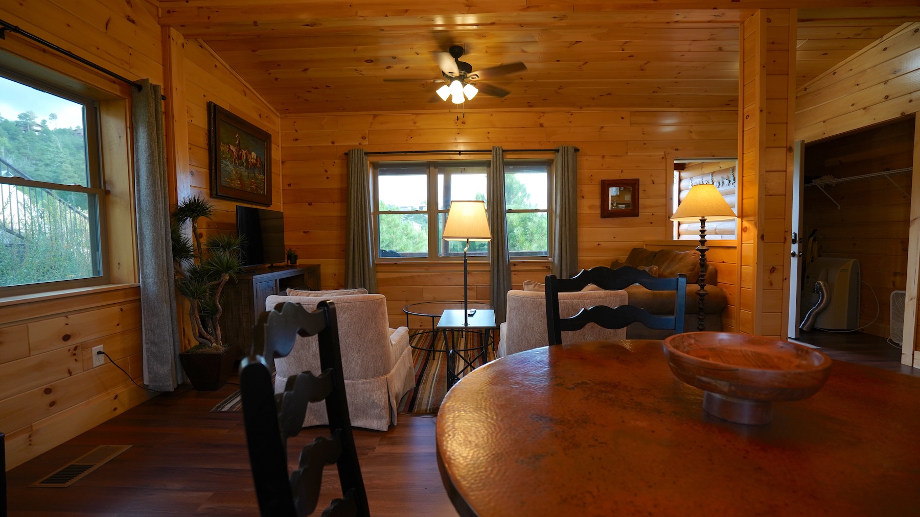 With amenities like an electric stone fireplace, central heat, WiFi, and a private grill, Moonlit Ridge blends rustic charm with modern convenience. Whether you’re traveling with family, friends, or a four-legged companion, it’s a welcoming choice among Mount Lemmon cabin rentals, ideal for those who want to unwind in style with the forest as their backdrop.