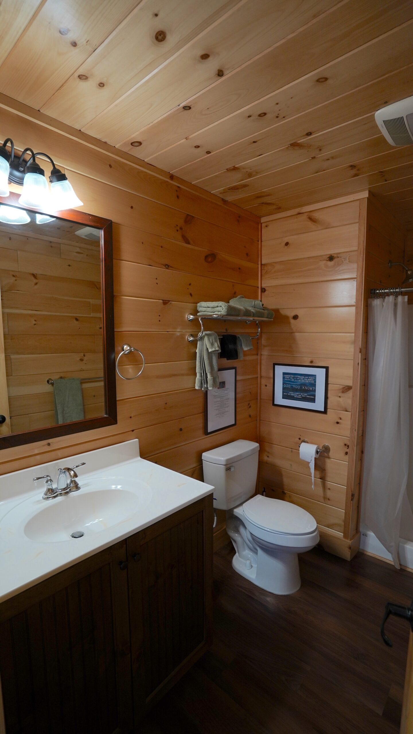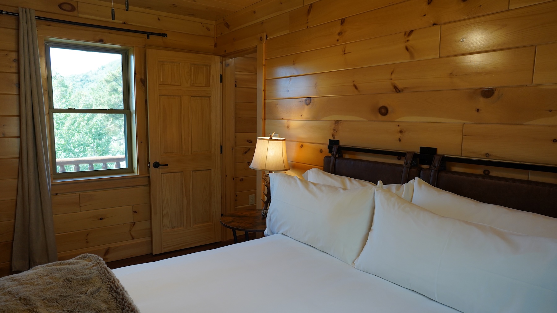 Charming, cozy, and full of character, Robin’s Nest is a thoughtfully designed cabin ideal for families or small groups. This two-bedroom retreat features a central living area with an open kitchen and dining space—perfect for gathering, relaxing, and sharing meals after a day in the mountains.