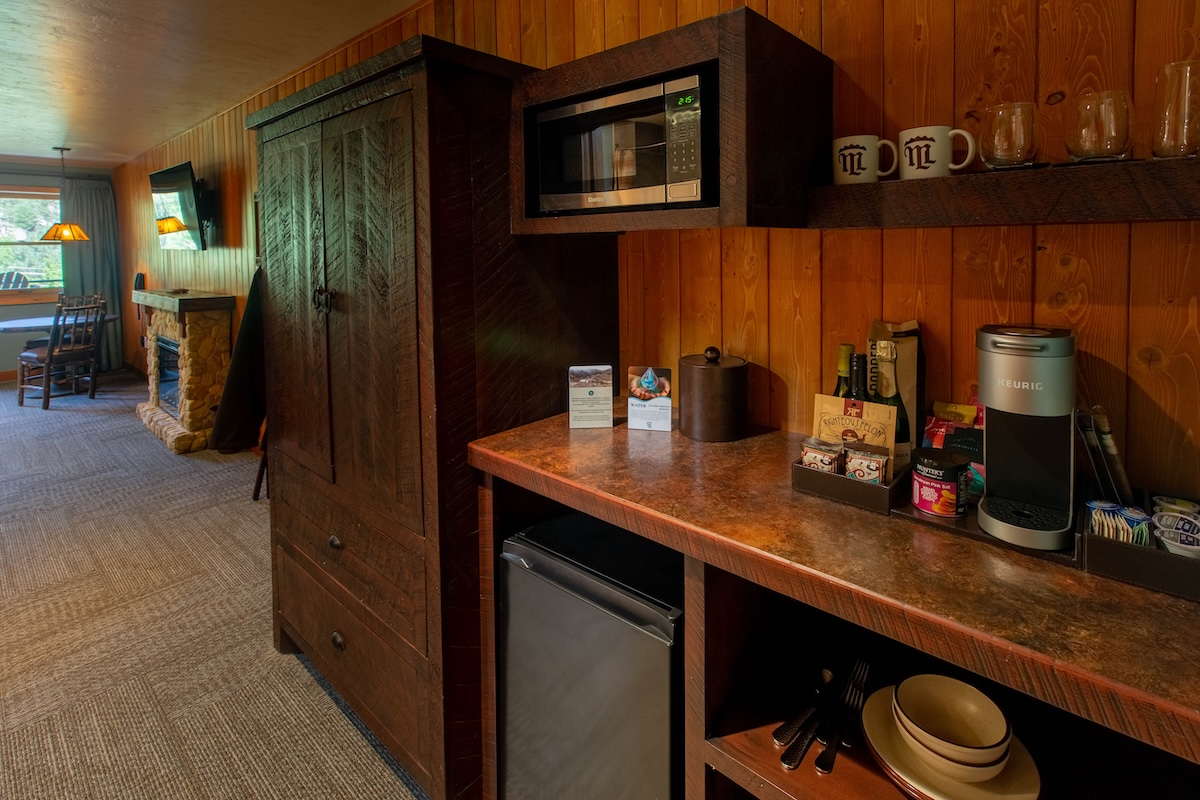 At 7,700 feet, simplicity feels luxurious. Our 365-square-foot Standard Rooms pair either a king bed or two queens with a private deck—your front-row seat to pine-scented breezes, sweeping views, and unhurried mornings. Quiet, restorative, and comfortably sized, it’s the perfect landing spot after a day on the mountain.
